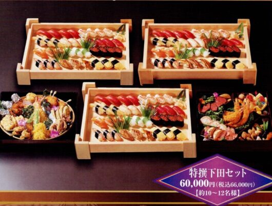 前の記事 特選 下田セット ¥ 60,000 (税込:¥64,800) 次の記事 唐揚げ盛合せ ¥ 5,000 (税込:¥5,400) 仕出し/お弁当おすすめメニュー おすすめメニュー 01 折詰 彩り弁当(いろどりべんとう) 折詰弁当 ¥ 2,200 (税込:¥2,376) ご家族・ご親戚 / 慶事・お祝い / 会議・集会 おすすめメニュー 02 折詰松花堂 万葉(まんよう) 折詰弁当 ¥ 4,700 (税込:¥5,076) ご家族・ご親戚 / 慶事・お祝い / 会議・集会 おすすめメニュー 03 お食い初め膳 会席料理 ¥ 6,500 (税込:¥7,020) 慶事・お祝い
