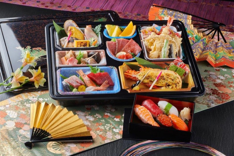 ロブスターのマヨネーズ焼きなど本格会席を折詰にしました。