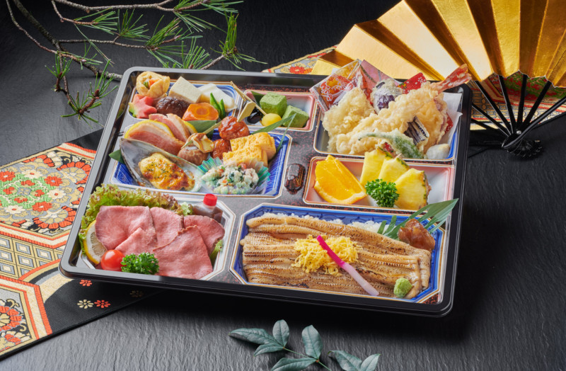 天ぷら、自家製ローストビーフ、煮物、八寸、穴子の白焼きごはん、水菓子、甘味
